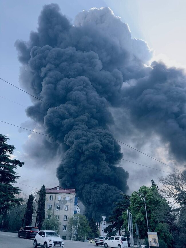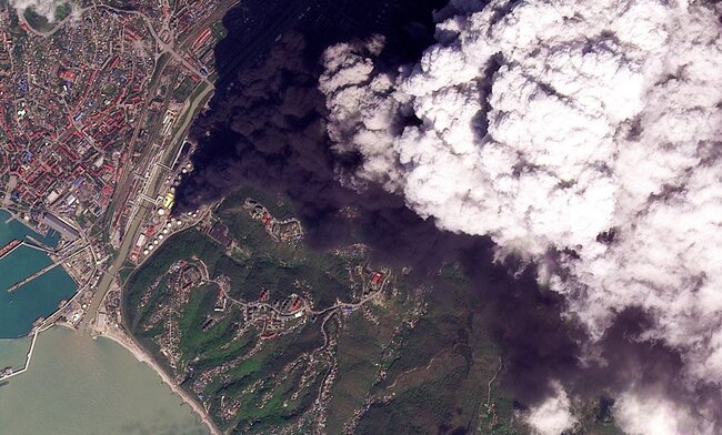 В порту после атаки начался сильный пожар, на момент написания этого материала его все еще не потушили. Спутниковые снимки показывают, что дым от горящих резервуаров с нефтью растянулся на более чем 300 километров и дошел до Ставрополя.